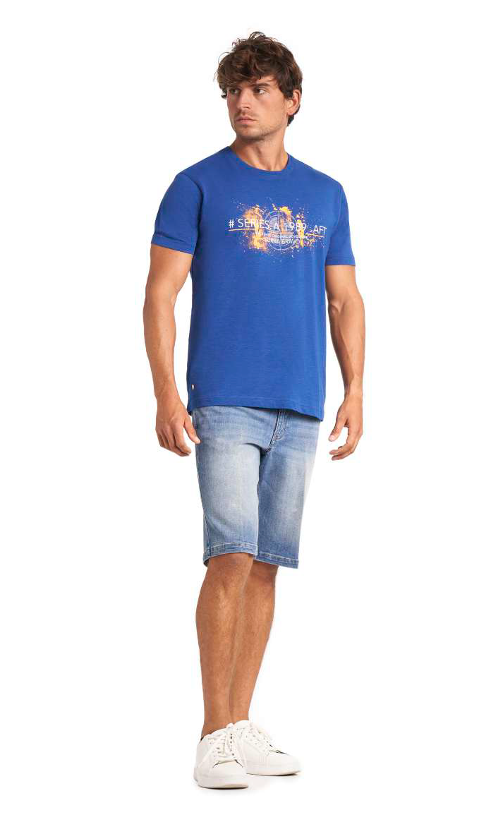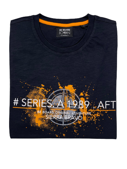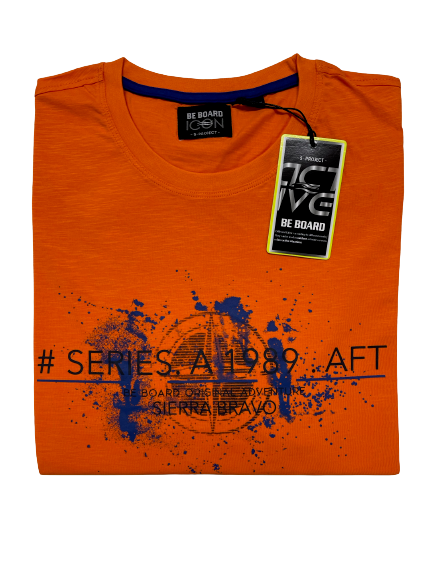 T-Shirt Mezza Manica Be Board in cotone fiammato tinta unita con stampa, girocollo, vestibilità ampia e regolare un capo fresco e adatto per tutti i giorni. Composizione 100% Cotone