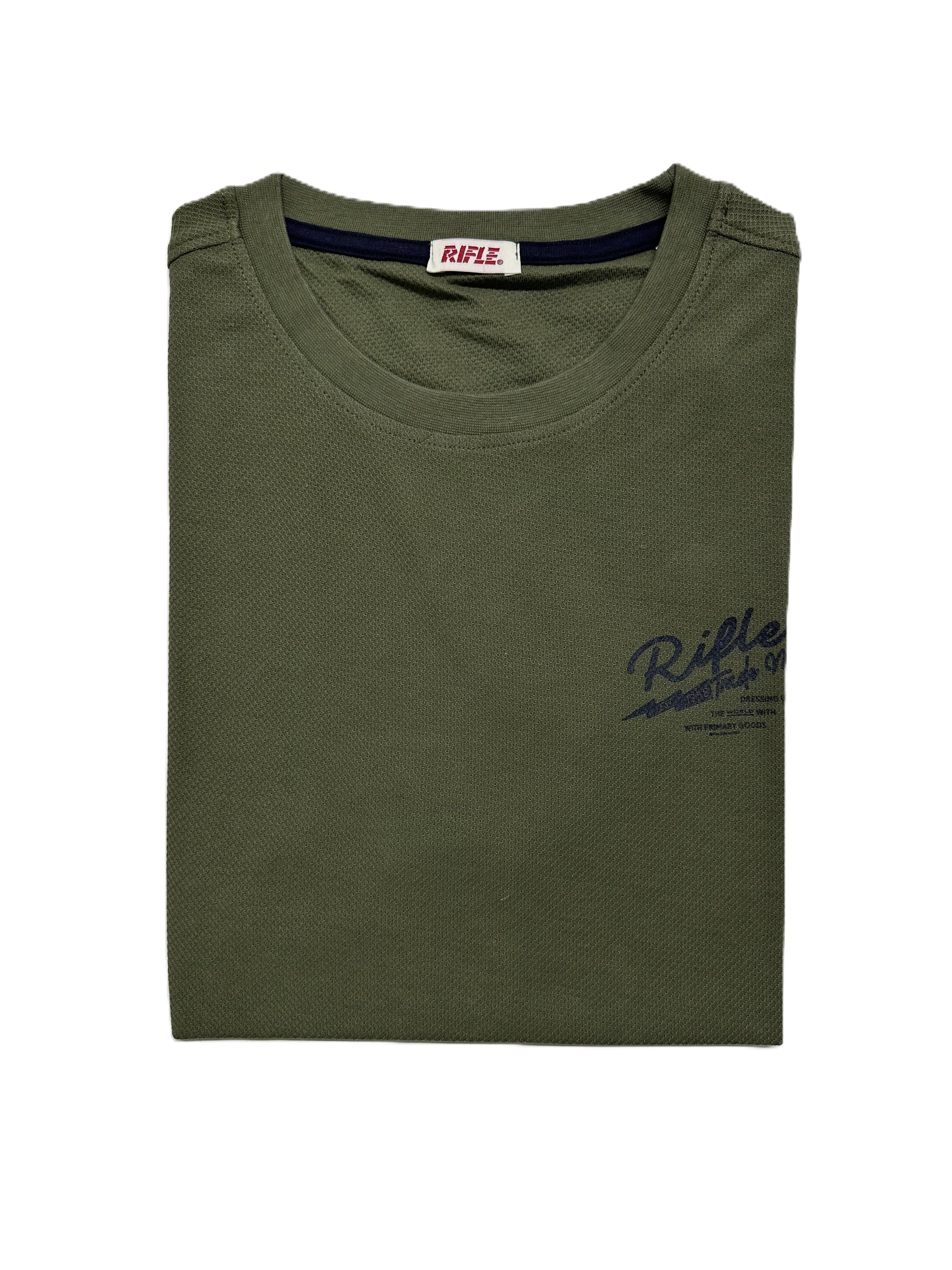Girocollo mezza manica Rifle in cotone nido d'ape, tinta unita con stampa, prodotto estremamente comodo e adatto alle calde giornate estive. Composizione 100% Cotone.