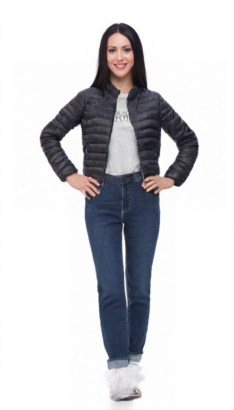 Virginia Blu 100 grammi senza cappuccio modello Flor, tessuto leggero tinta unita, chiusura full zip, tasche laterali con zip, capo elegante e sportivo allo stesso tempo, particolarmente curato e adatto alla mezza stagione. Composizione Tessuto 100% Poliestere - Fodera 100% Poliestere - Imbottitura 100% Poliestere