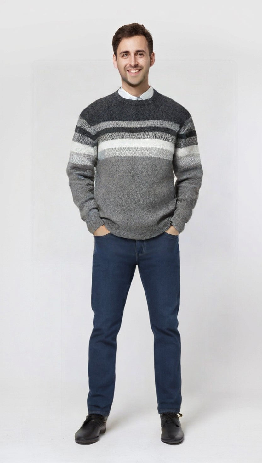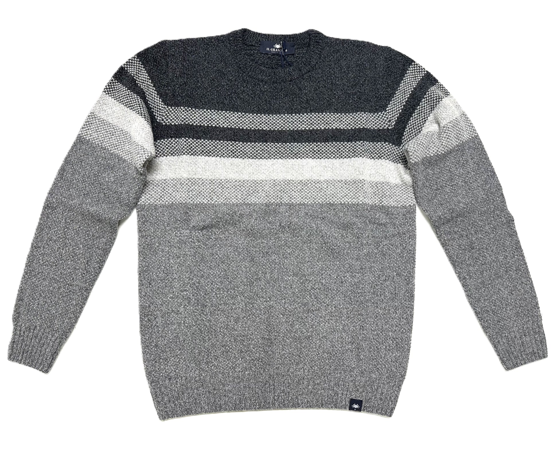 Girocollo a righe Il Granchio lavorazione a nido d'ape, capo giovanile con vestibilità regolare, particolarmente adatto per le fredde giornate invernali e per tutte le occasioni. Composizione 60% Lana 40% Acrilico