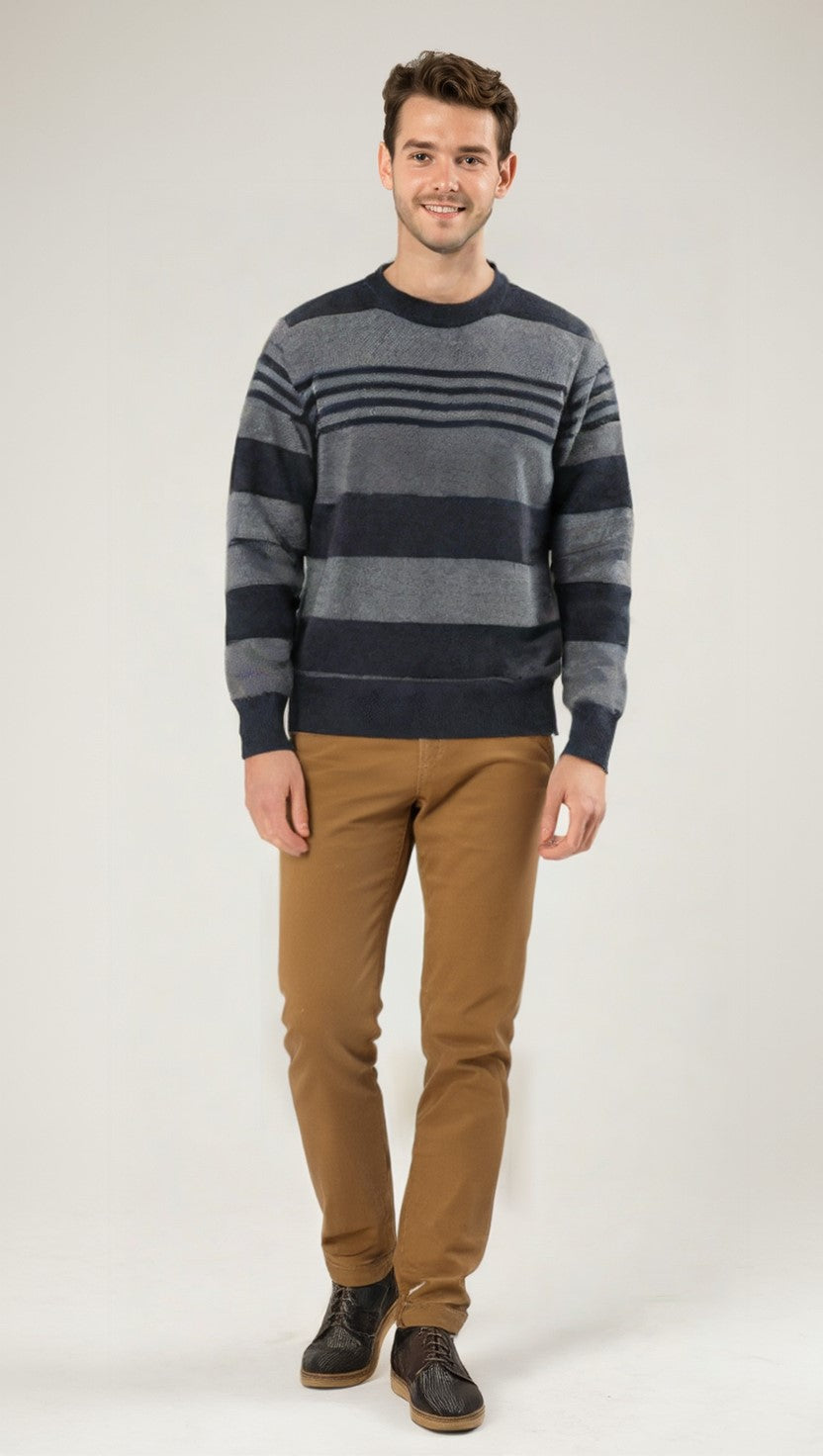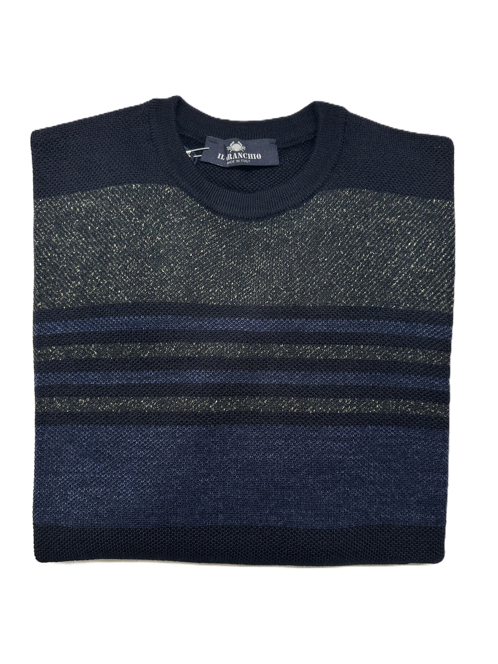 Girocollo a righe Il Granchio lavorazione a nido d'ape, capo giovanile con vestibilità regolare, particolarmente adatto per le fredde giornate invernali e per tutte le occasioni. Composizione 60% Lana 40% Acrilico
