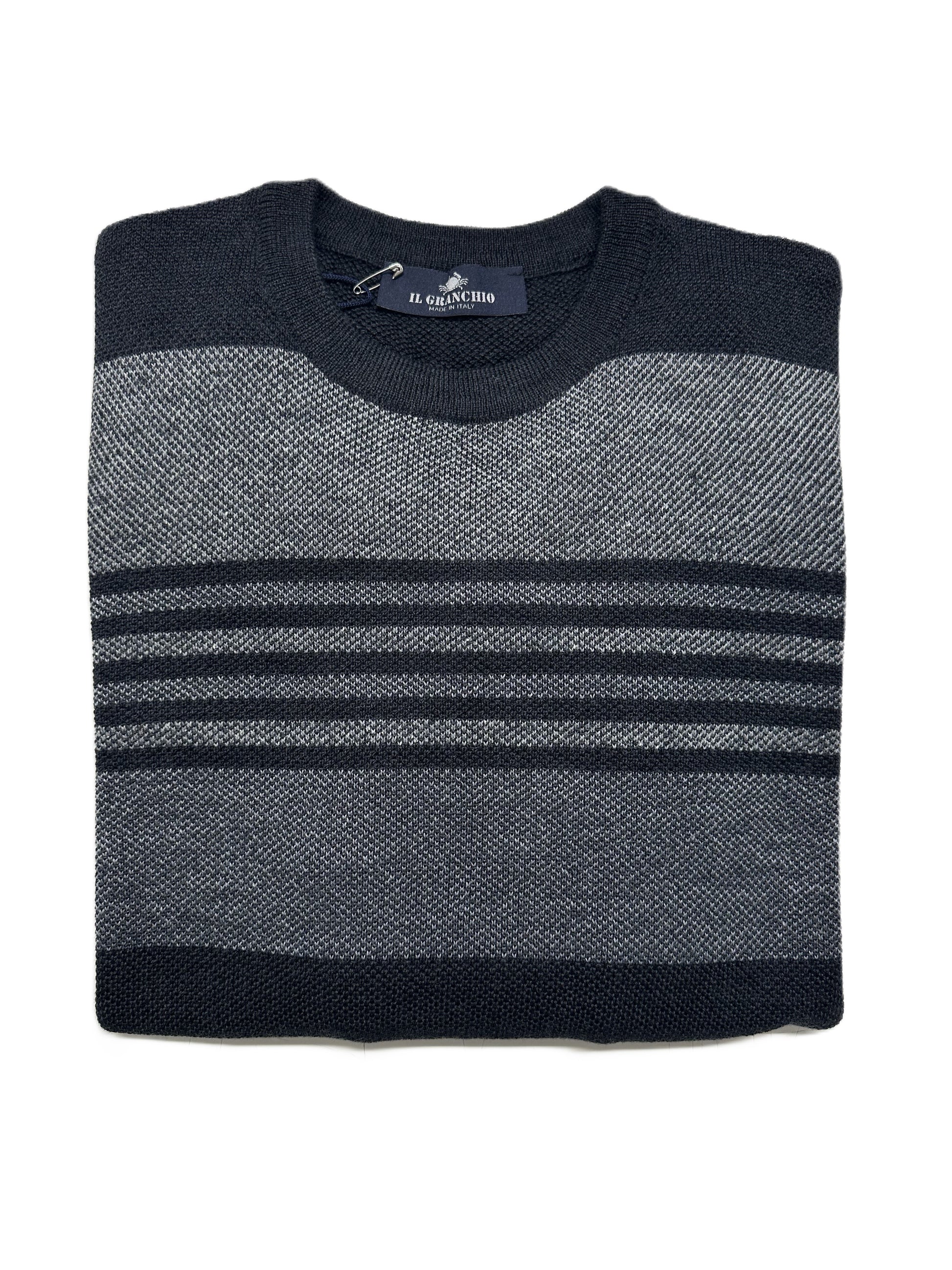 Girocollo a righe Il Granchio lavorazione a nido d'ape, capo giovanile con vestibilità regolare, particolarmente adatto per le fredde giornate invernali e per tutte le occasioni. Composizione 60% Lana 40% Acrilico