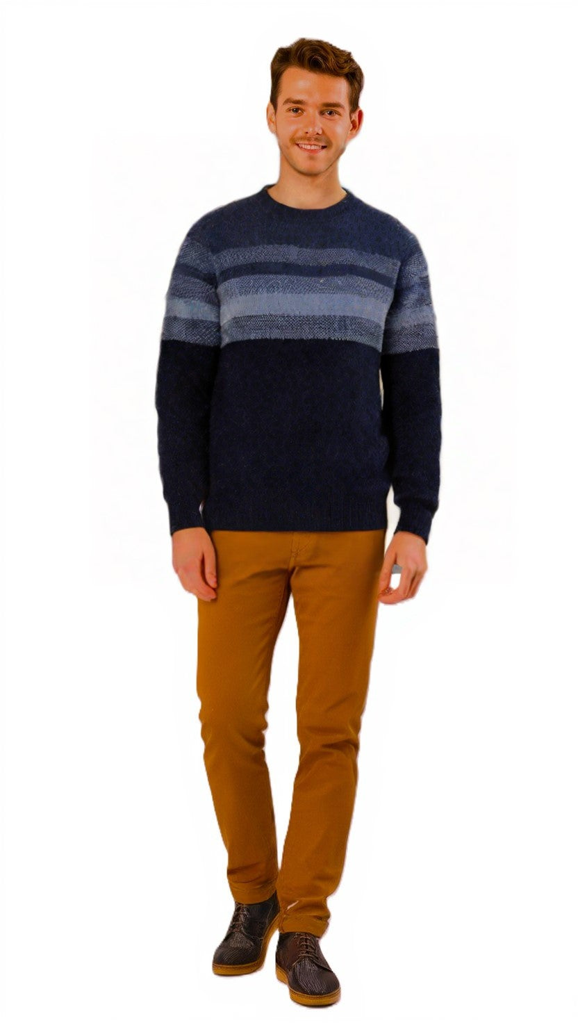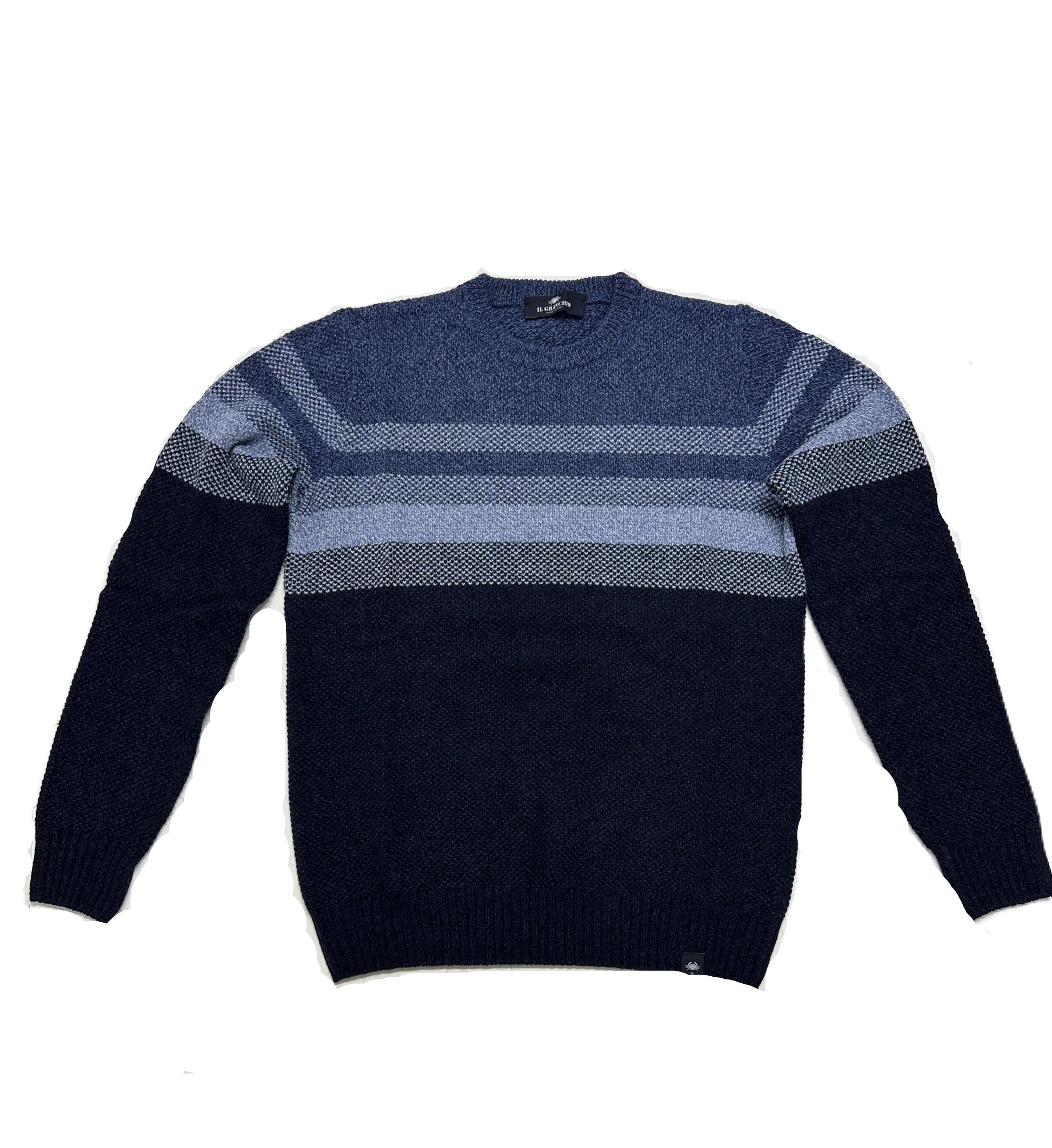 Girocollo a righe Il Granchio lavorazione a nido d'ape, capo giovanile con vestibilità regolare, particolarmente adatto per le fredde giornate invernali e per tutte le occasioni. Composizione 60% Lana 40% Acrilico